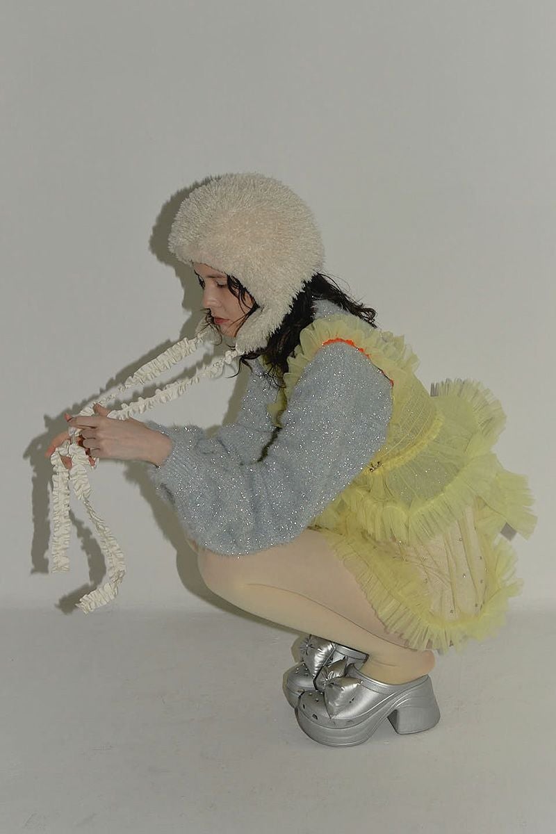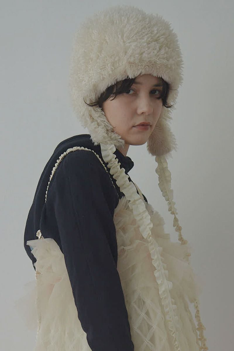 FUR-FA EAR FLAP CAP/IVORY×IVORY