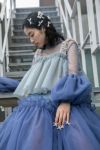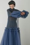 丸みを帯びたボリューミーなカフスデザインが目を惹くチュールドレス。