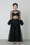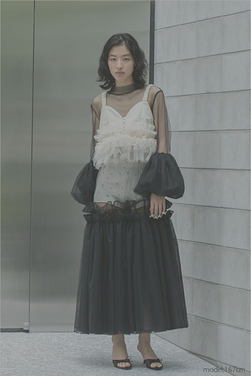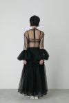 丸みを帯びたボリューミーなカフスデザインが目を惹くチュールドレス。