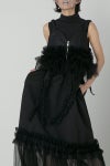 裾にはチュールを掛け合わせ、甘さのバランスを整えて。