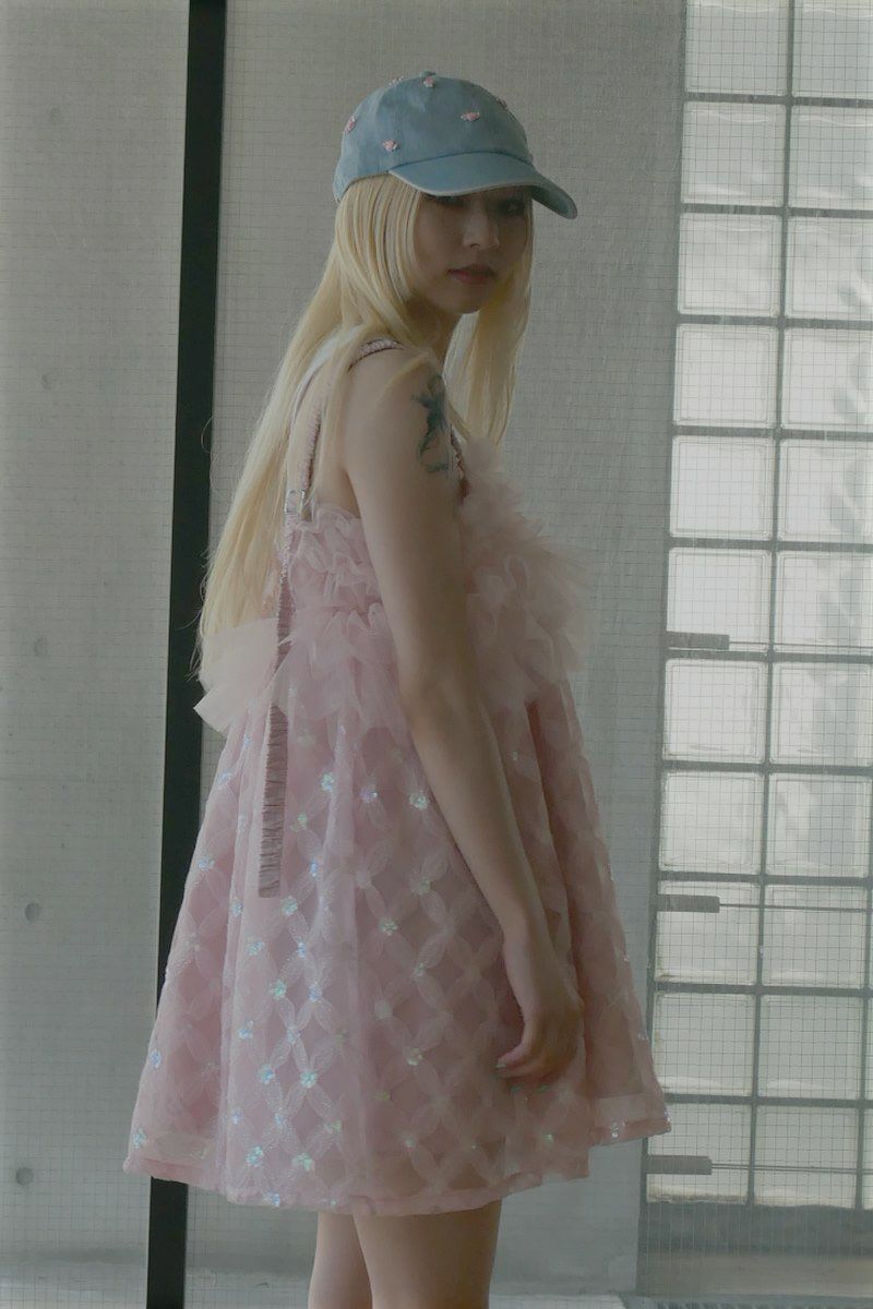 小花柄に煌めくスパンコールを散りばめ、いとおしい表情のチュールがより華やぎ新しい表情に。