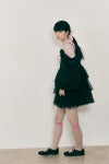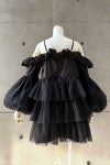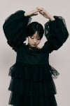 重なるティアードのシルエットは湖面に広がる水の輪のように揺らめき、いじらしい雰囲気に。