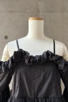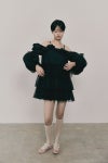 風に揺れる雲のようにふんわりと広がるボリュームスリーブは象徴的で、肩からそっと滑り落ちるパフオフショルダーはあなたの美しさを引きたてます。