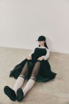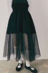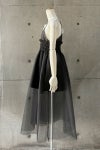 光をやさしく反射するジャカード生地と、ふんわりとしたチュールの重なりが織りなす軽やかなシルエットは静かな夜空のように神秘的で洗練された印象を与えます。