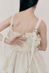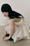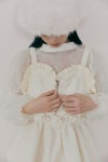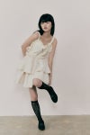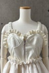 フリルが胸元を可憐に彩り、曲線的なバストラインとジップディテールがセンシュアルさを引き立てます。