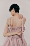 歩くたびに揺れるシルエットは、花びらのように柔らかで華やかな印象を残します。