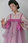 胸元のベルト部分のみホックで止め、チュール部分は前開きのデザインに。