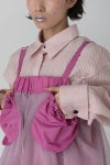 上品な光沢とハリのあるツイル素材とチュールを掛け合わせ、